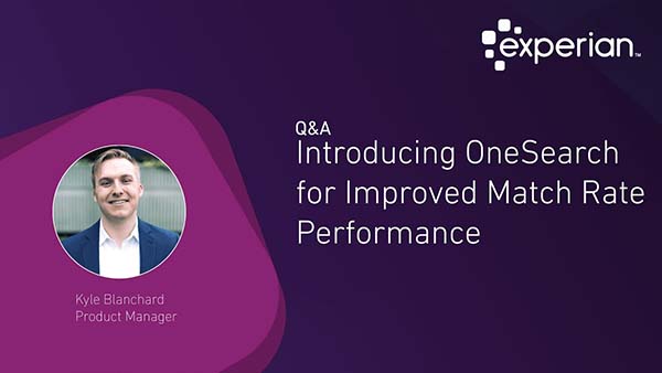 We recently sat down with Kyle Blanchard, Product Manager with Business Information Services to ask him a few questions about Experian's improved OneSearch technology. What is OneSearch? OneSearch is a lot of things at its core. OneSearch is the ability for a customer to find a business, but the story of OneSearch is much bigger than that. OneSearch is Experian's technological advancement and journey on how we're bringing all of our innovations to drive improvements for our customers. So, our customers can find businesses today, but at Experian we had to ask the question, how can we make this better? And with OneSearch, we're providing the ability for our customers to find businesses faster, and for them to find a more exact match and a more precise business every single time. What should Experian clients expect? Our clients can expect a variety of changes. Those changes won't come in terms of the products or services you're using today, but more about the experience you're having. So whether you're using BusinessIQ, or you're getting files in batch, the only experience difference you're going to feel is you're going to get better match results, more match results, and you're going to get them at a faster speed. So your experience is going to improve. This is going to be free of charge. This is just an internal improvement that we're making for you. But, every way you interface with our applications or your services will not change at all. Why does OneSearch matter to our clients? This matters a lot to our clients. Their first experience and every experience they have with us starts with finding the right business. So, we stepped back and we asked ourselves, how can we improve this experience for our customers and how can we make it better? And so, we looked at all technologies available and we did an evaluation, and what we had was a deterministic solution but where we really needed to be was a probabilistic one. But the investment that the company or that we needed to make to get there is significant. But we saw that this is an important investment to make because of the improvements that it can drive for our customers, and the improvements it could drive for our customers are wide and varied. Whether it be an improved ROI because you're finding more businesses, or a faster processing time so you can do more jobs even quicker. Why is Experian investing in innovation and technology? Experian is investing in innovation and technology for two reasons. One, it's part of our culture, we're always investing in innovation and technology, whether it be this probabilistic search match algorithm, whether it be machine learning or whether it be A.I. We're always trying to innovate and always trying to drive new best practices in technology. Finally, we know the importance from our customer perspective. This is fundamental to their experience. And not only that, we recently partnered with Forrester to do a research study and found that over 85% of risk managers are looking to improve their risk management practices. 75% of those are willing to invest and purchase a solution within the next year. So we know how important this is to our customers, and the only way to get there is to innovate and always drive new technology. Learn More About OneSearch