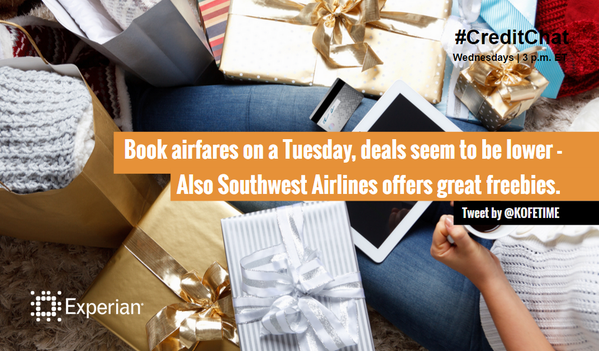 Do you have to do some traveling this holiday season? Don’t let the seasonal prices get the best of you! This chat featured tips and tricks to help you save money on your travel expenses. Our panel included: Tonya Rapley– Certified Financial Educator, Millennial Money Coach and Founder of MyFabFinance.com, Paul Moyer Founder of SavingFreak.com,  Rod Griffin– Director of Public Education at Experian, and Mike Delgado– Social Media Community Manager at Experian.